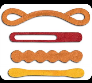 We also have many functional shapes such as straps and anchors for toggle and buckles assemblies and custom made shapes for specific products and labels.