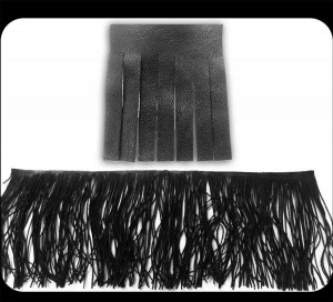 Leather can be processed from full hides in continuous fringe up to a length of 3″.